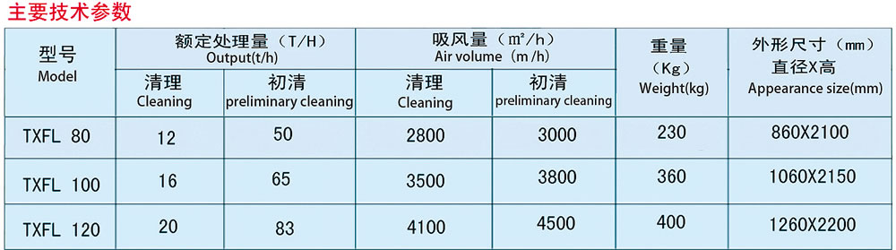 中低密度杂质与颗粒物质(如小麦、大麦、稻谷、油料、玉米等)分离。该机采用了闭路循环风的形式,本身具