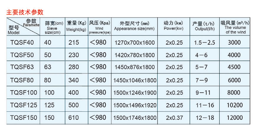 TOSF型比重分级去石机是利用筛理和气流的联合作用进行分级去石,