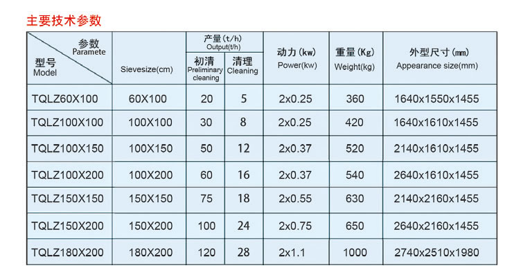 TQLZ型自衡式振动筛主要用于对粮食中的大中小及轻杂质进行筛理分