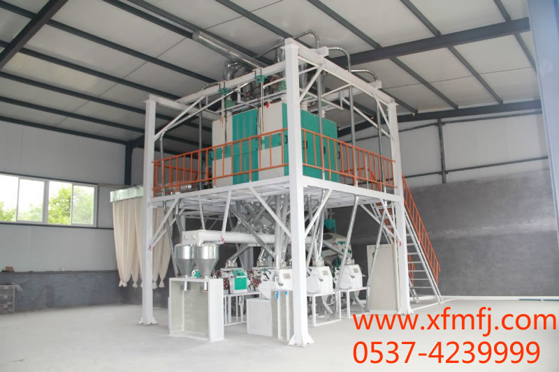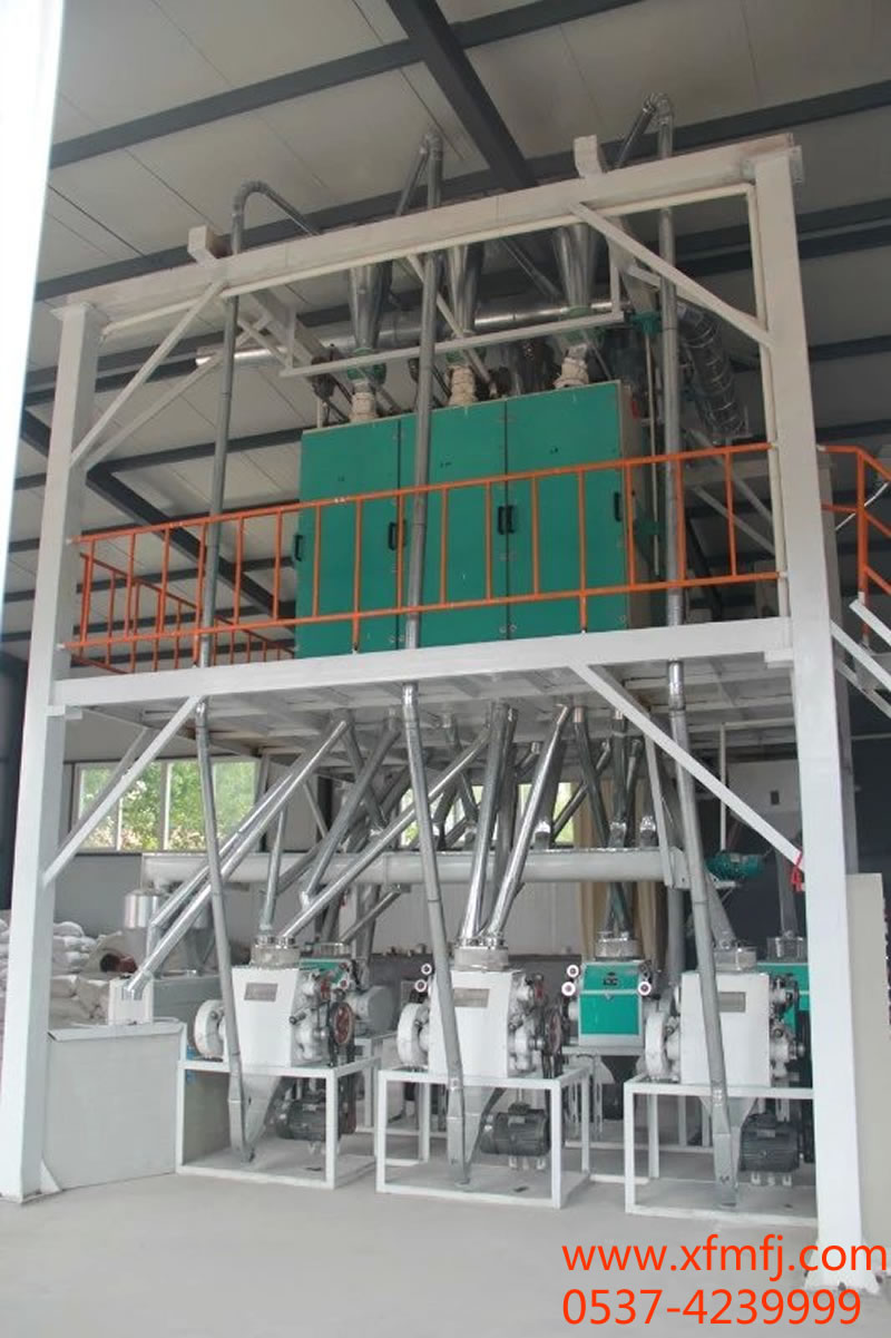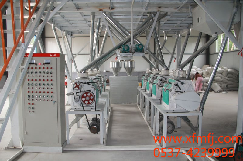 本设备设计科学工艺先进,清理采用三筛两打两去石一洗麦两磁选一风选。8台磨粉机制粉、一组六仓筛,工艺三皮四芯一渣,长粉路轻研细磨、面粉质量优良,可生产精粉、特一粉、特二粉、 标准粉。主要适合小规模面粉厂。设备 长18米、宽8米、高8米、动力100Km.