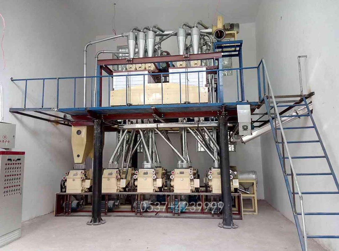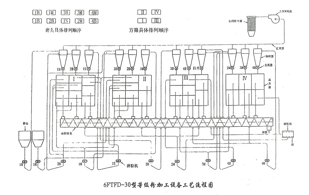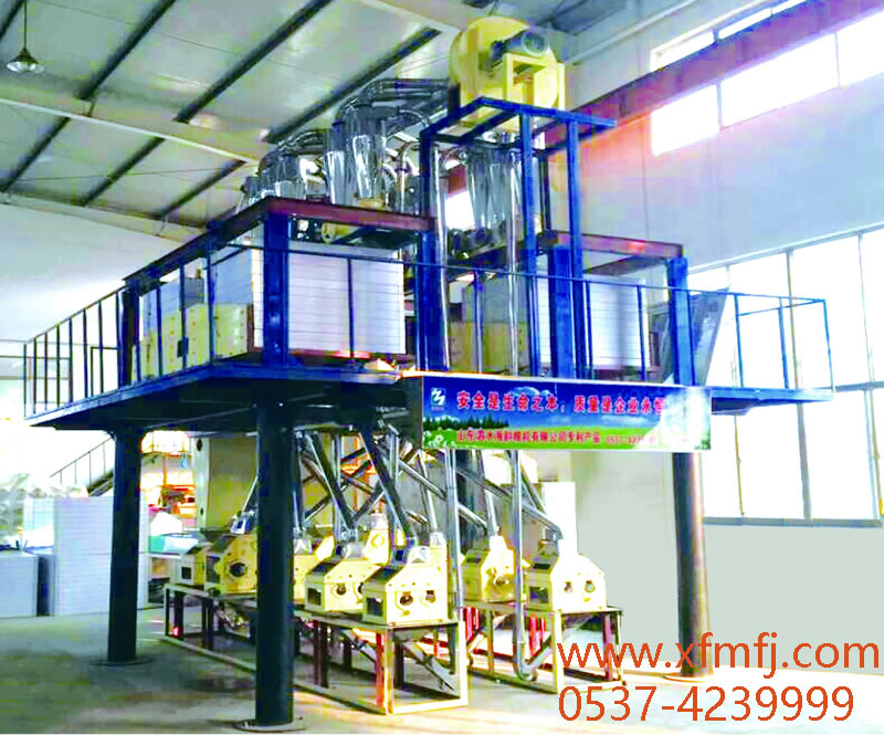 本设备设计科学工艺先进,清理采用三筛两打两去石一洗麦两磁选一风选。10台磨粉机制粉、两组六仓筛,工艺四皮四芯一渣,长粉路轻研细磨、面粉质量优良,可生产精粉、特一粉、特二粉、 标准粉。主要适合农村来料加工及小规模面粉厂。设备 长18米、宽8米、高6.5米、动力90Km.