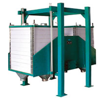 FSFJ型双仓筛是面粉厂对打包前的面粉进行检查的高效筛理设备,亦可用作制粉和分级,该设备结构紧