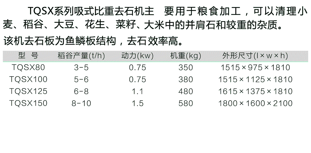 TQSX系列吸式比重去石机