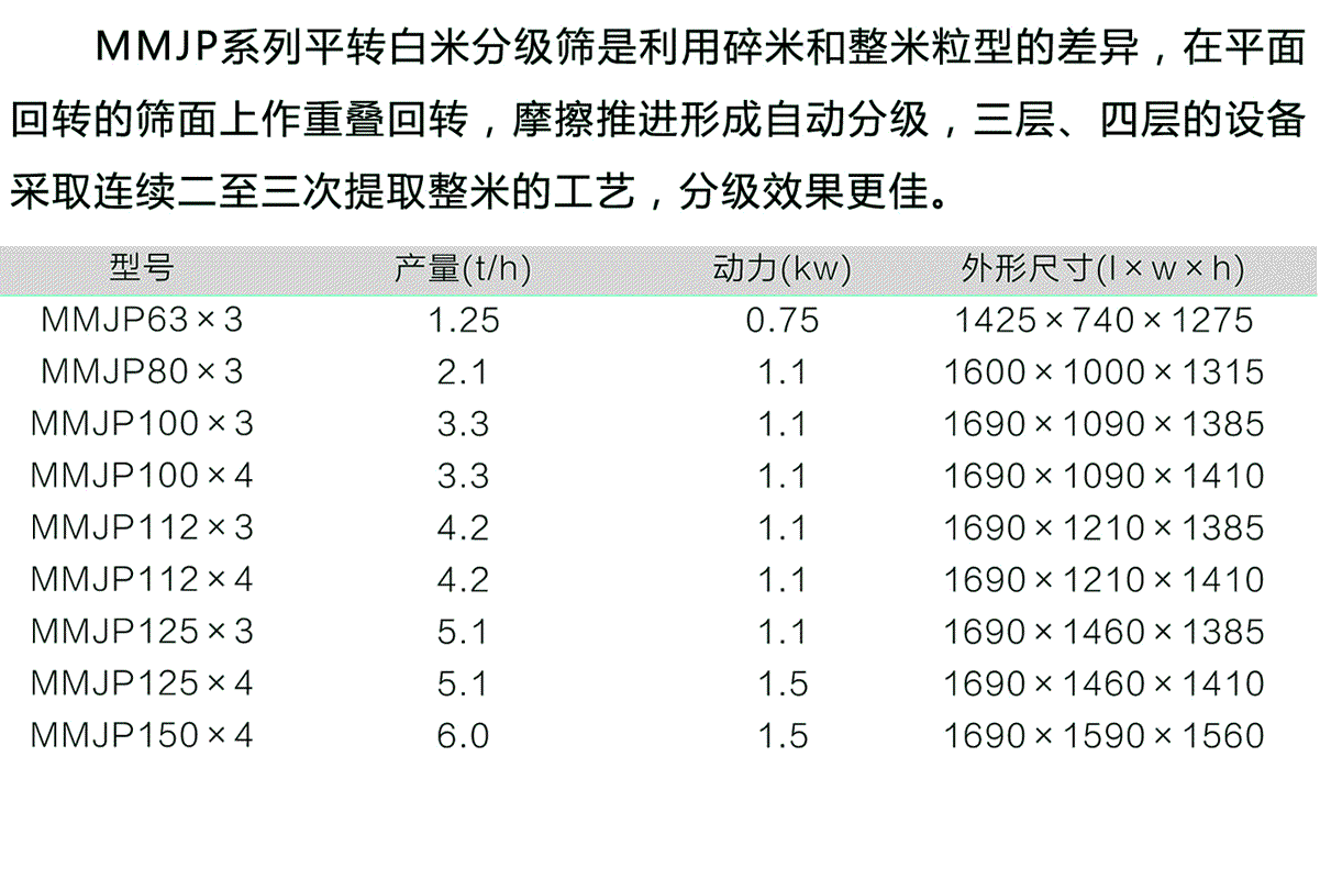 MMJP系列平转白米分级筛