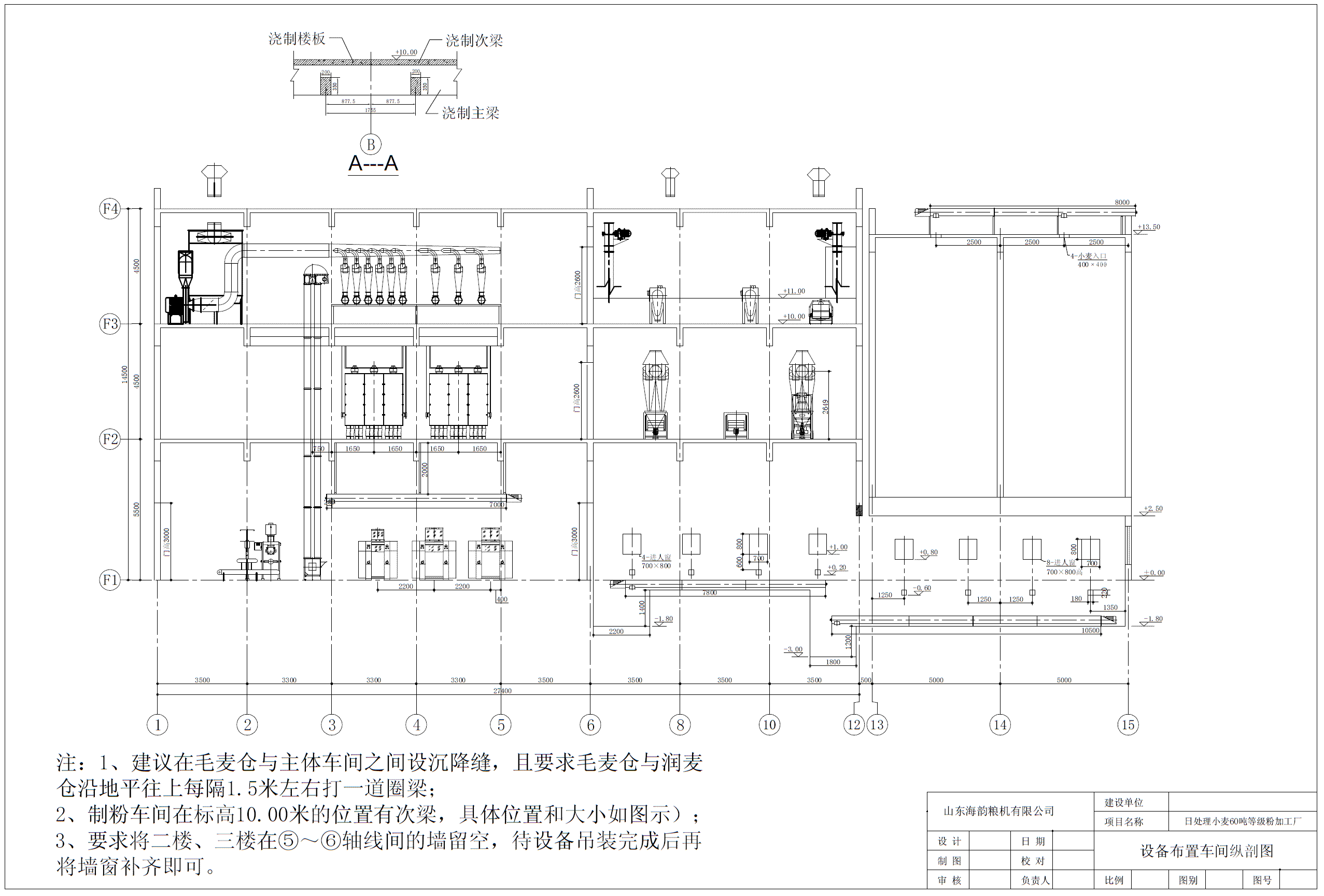 气动磨40-60吨面粉成套设备